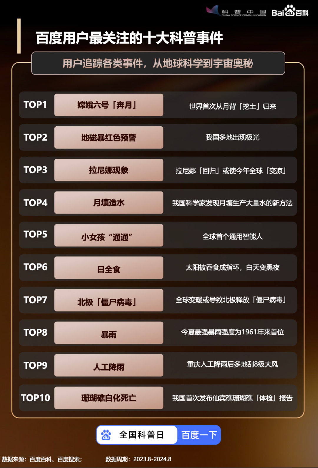 《2024全国科普日百科知识数据报告》出炉百度用户最关注的科普内容有哪些?